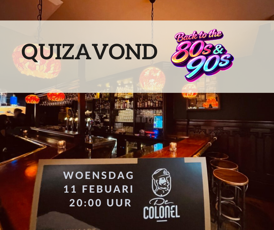 · De Colonel, Slotlaan 266, 3701 GW Zeist 80s & 90s Quizavond bij De Colonel Zeist nostalgischenoten4 januari 2026